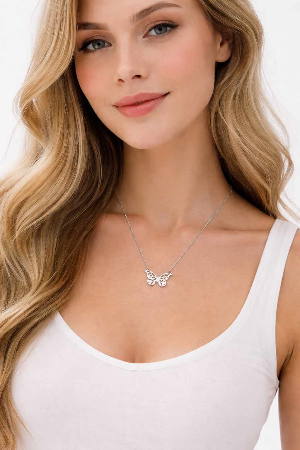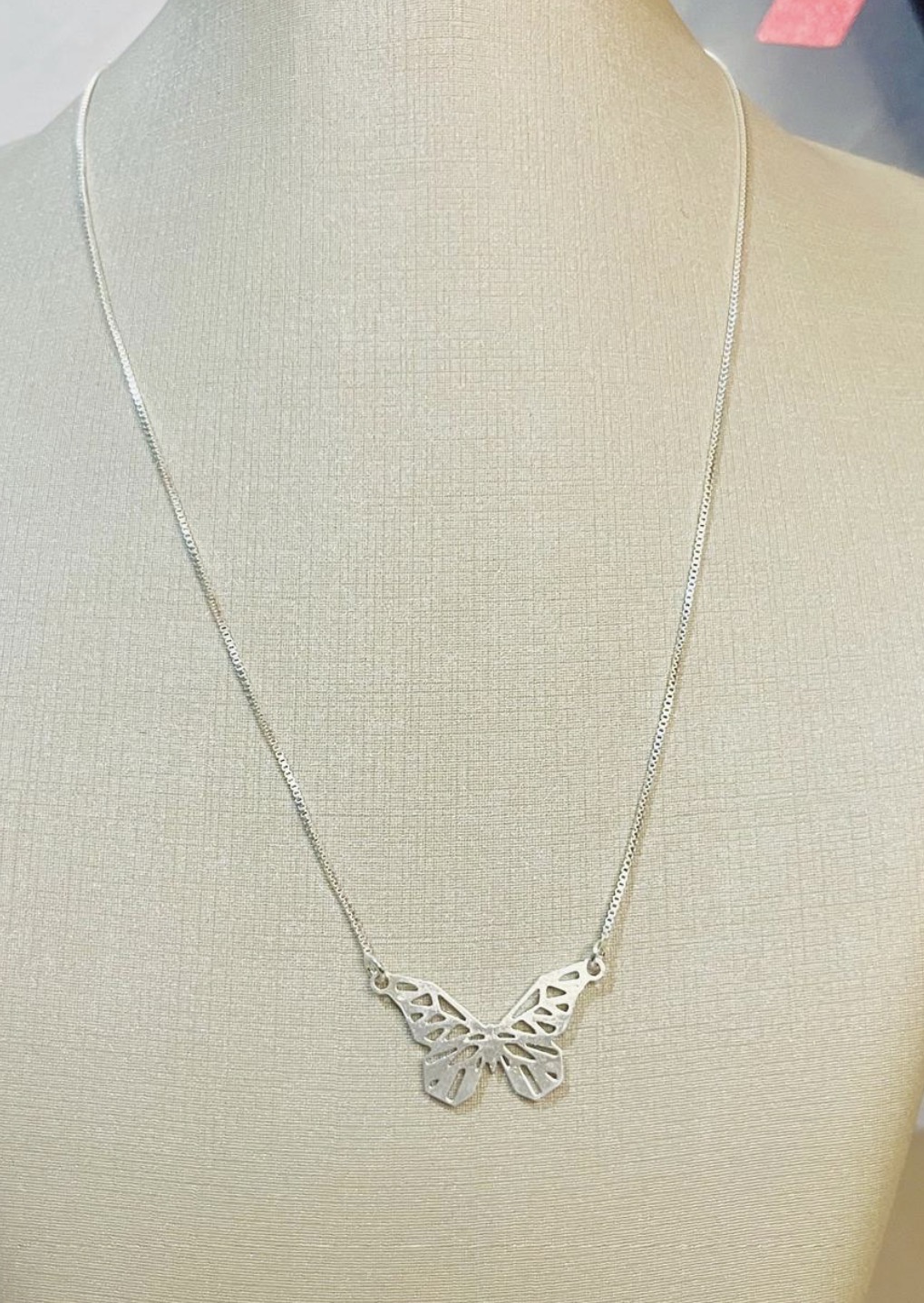 - Charmosa e cheia de significado, a veneziana com pingente de borboleta banhada a prata representa leveza, transformação e beleza.